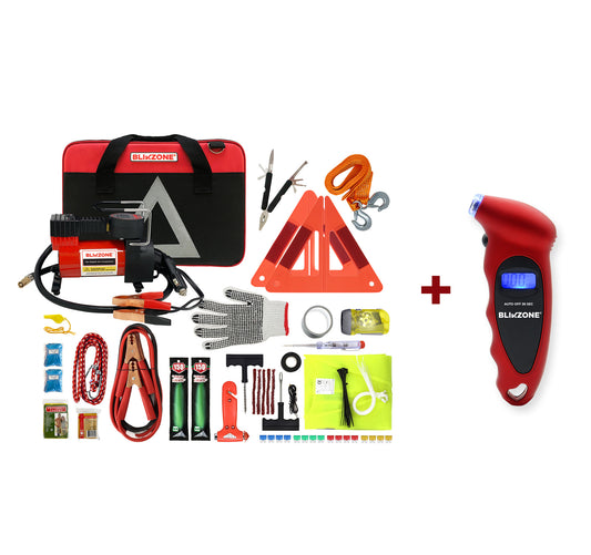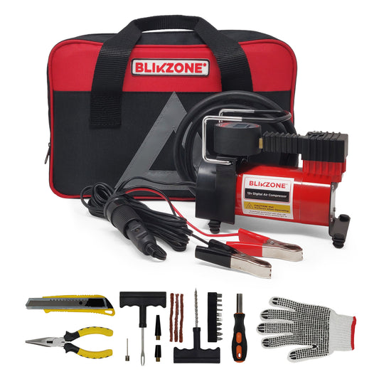 Blikzone Car Emergency Safety Kit with Digital Air Compressor for Car