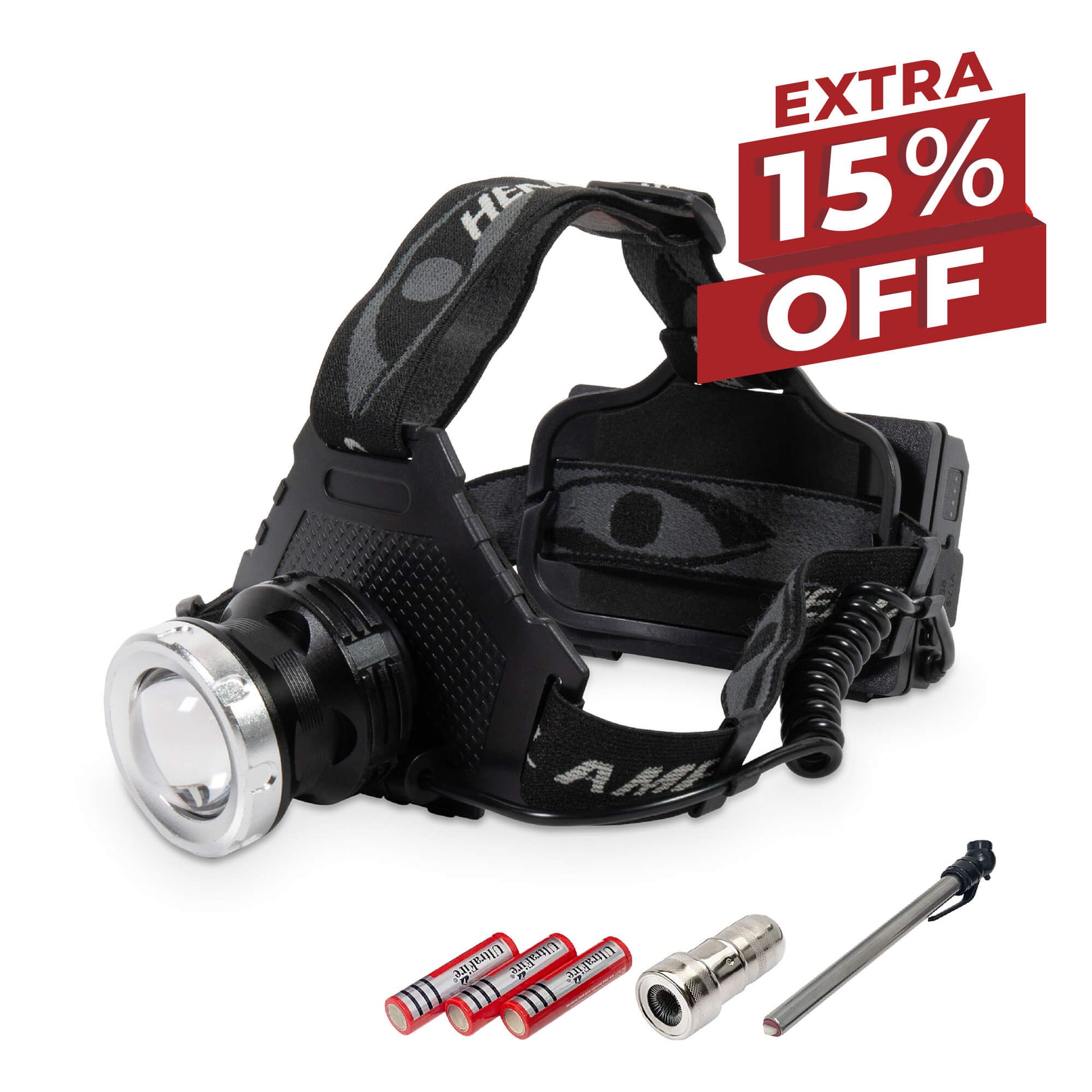 🔌 LED HEADLAMP RECHARGEABLE contains a Powerful flash light, waterproof, 1000 lumens, rechargeable USB powered with advanced LED P70/P50, 5 Different Modes: High, medium and low intensity, strobe and SOS functions.